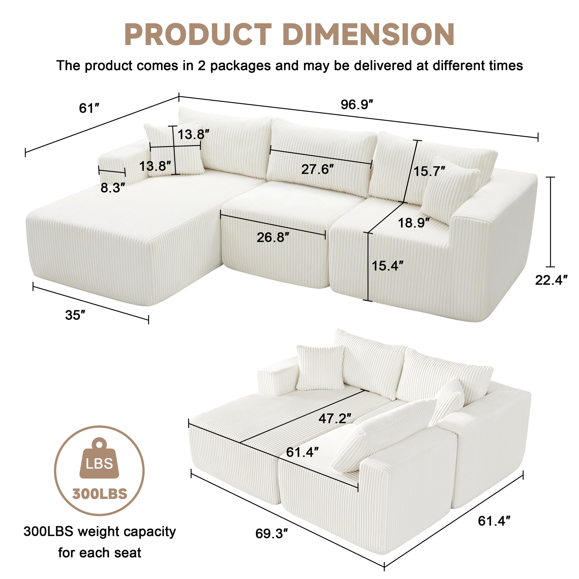 - Modular Sectional Sofa:Enjoy true relaxation with the extended chaise section – your new favourite spot for lounging, reading, or napping. This comfy couch brings soft support exactly where you need it most.