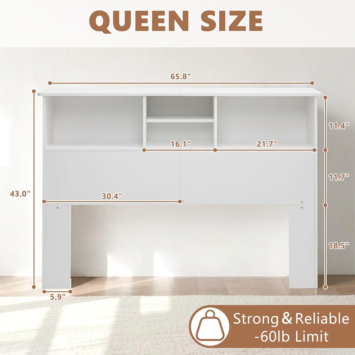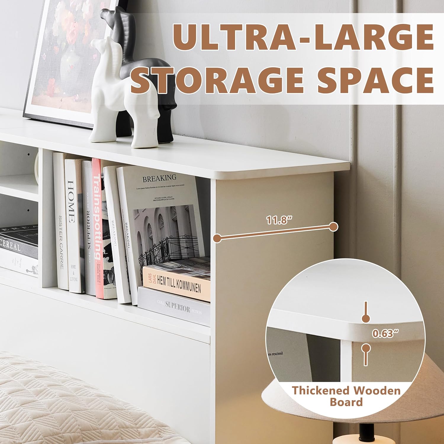 - Extra Deep Storage: Bookcase Headboard Queen Size offers an ample 11.8-inch storage depth;The wood headboard queen ideal for storing pillows, blankets, and nighttime essentials to keep your space organized