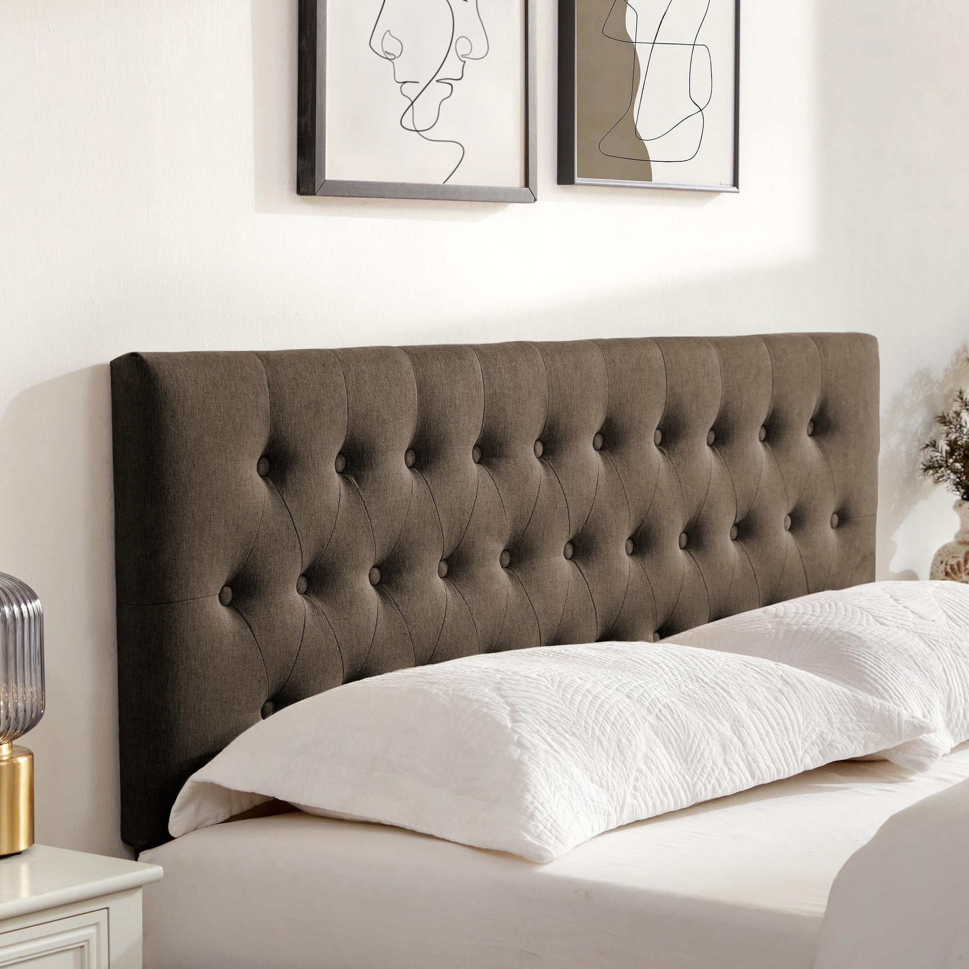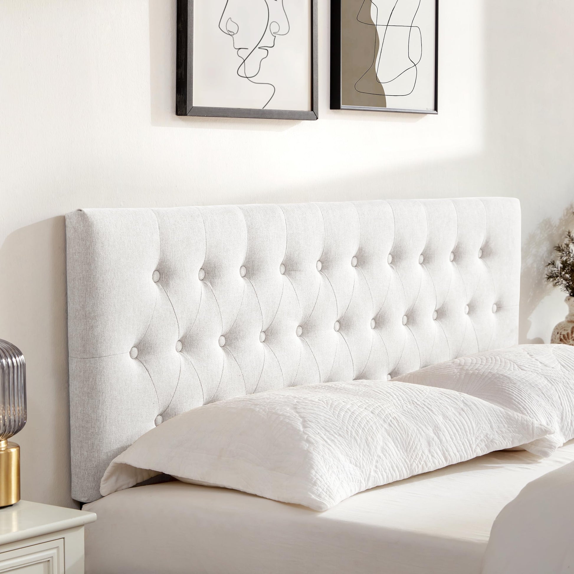 - Modern Design: Featuring tufted buttons, this queen headboard only adds elegance and a modernity touch. Available in gray; beige; and black, our head boards queen immerse any room in a serene and comfortable vibe. Ideal for your bedroom or guest room