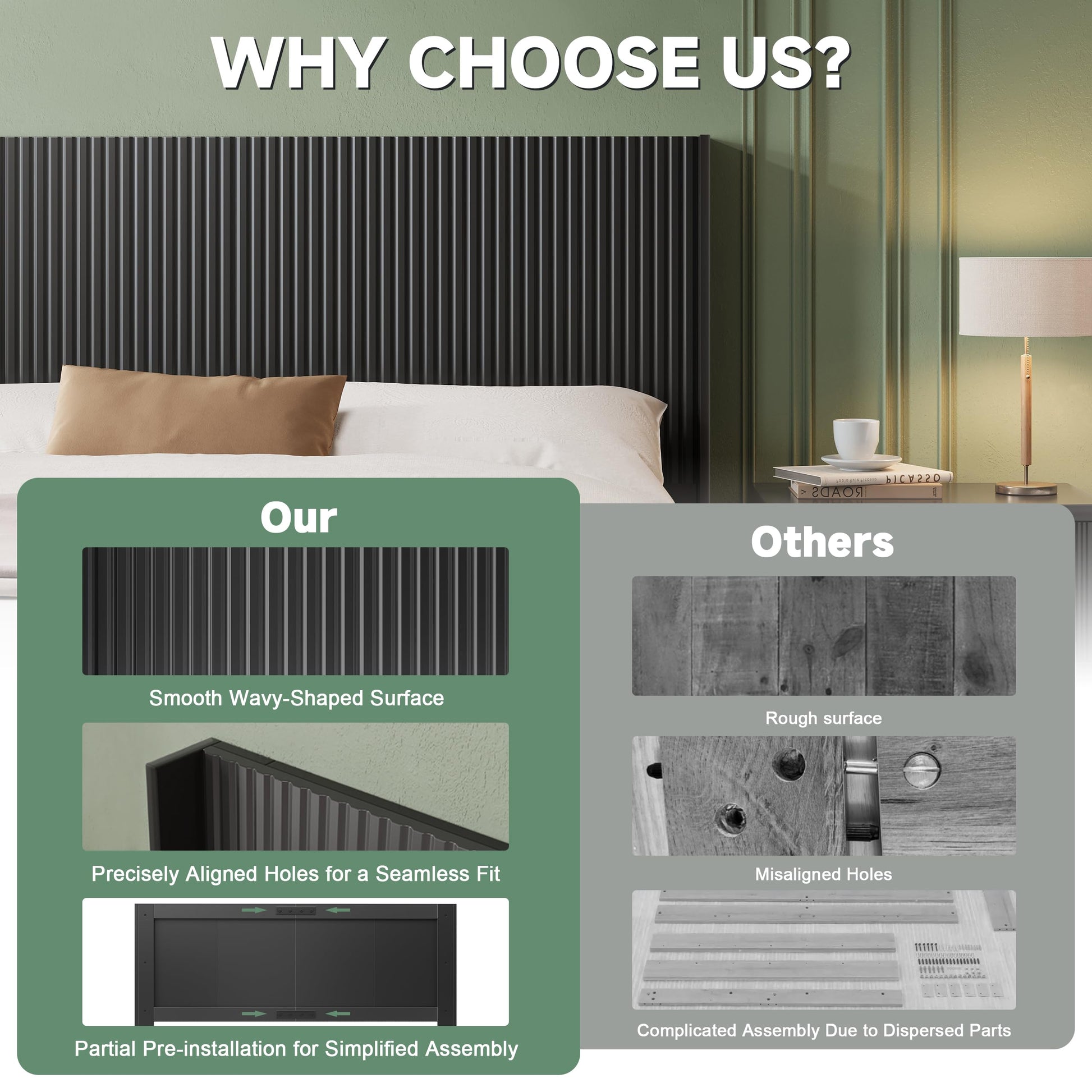 - Unique and Elegant Design: Our wooden headboard queen features a unique wavy grooved panel design combined with a modern artistic style. The wingback design on both sides enhances its overall stylish appearance, making it a perfect fit for any decor style