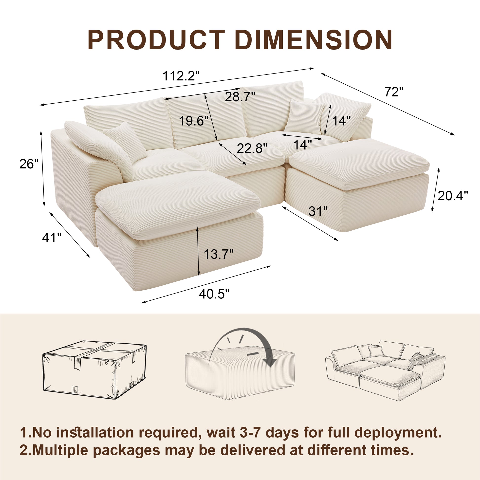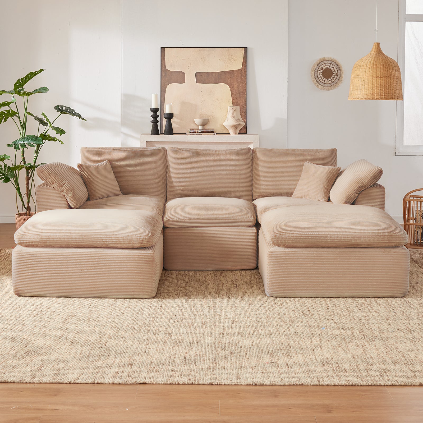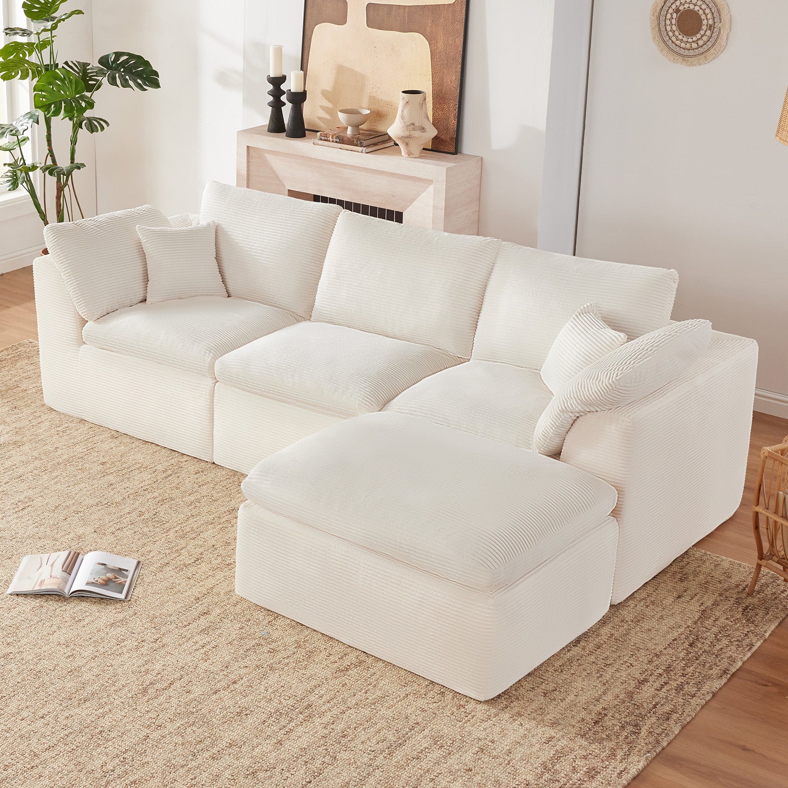 - Soft & Wrinkle-Resistant Corduroy Fabric: Wrapped in premium wrinkle-resistant corduroy, the modular cloud couch offers a soft, skin-friendly touch and is easy to clean. The fine ribbed texture adds warmth and elegance, bringing a soft, welcoming vibe to any living space