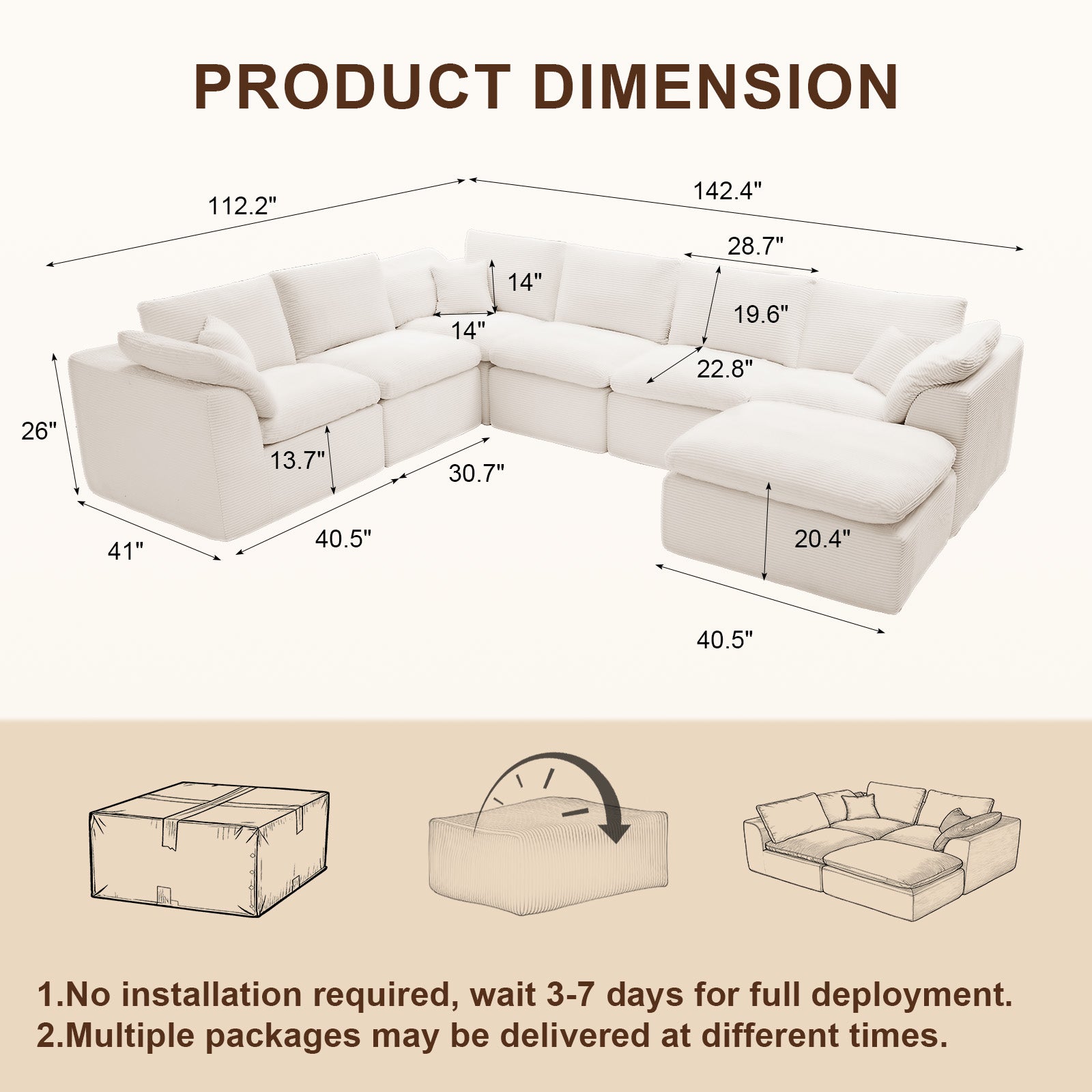 - Soft & Wrinkle-Resistant Corduroy Fabric: Our modular cloud couch uses premium corduroy fabric that is soft, durable, and wrinkle-resistant. Easy to care for and comfy for everyday use
