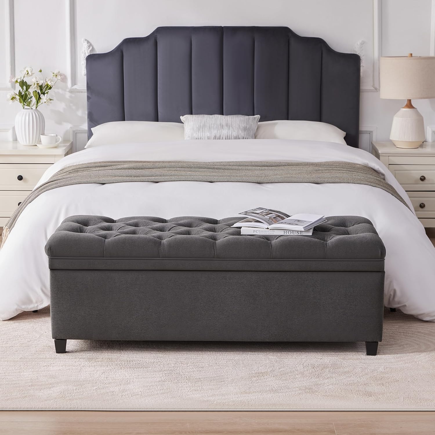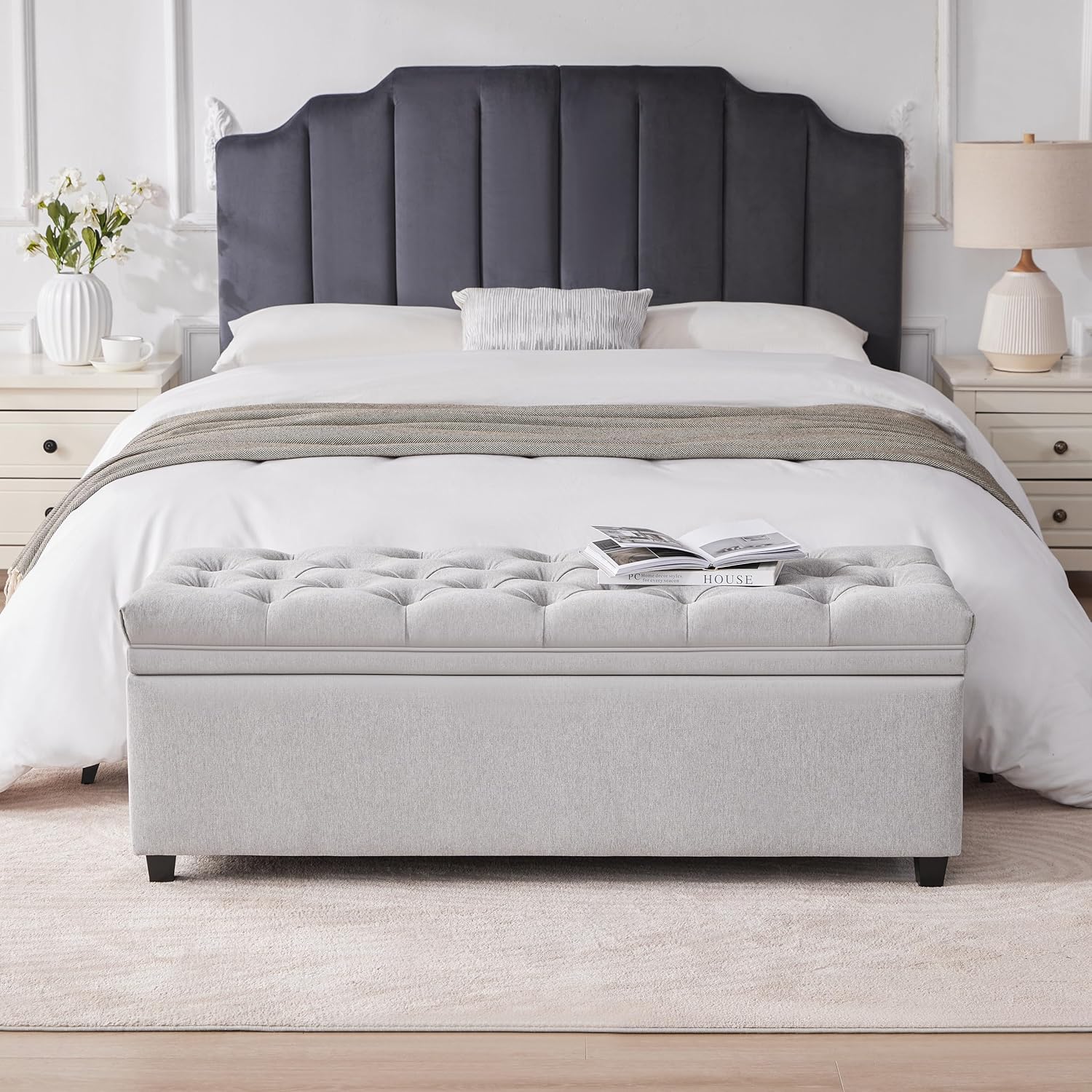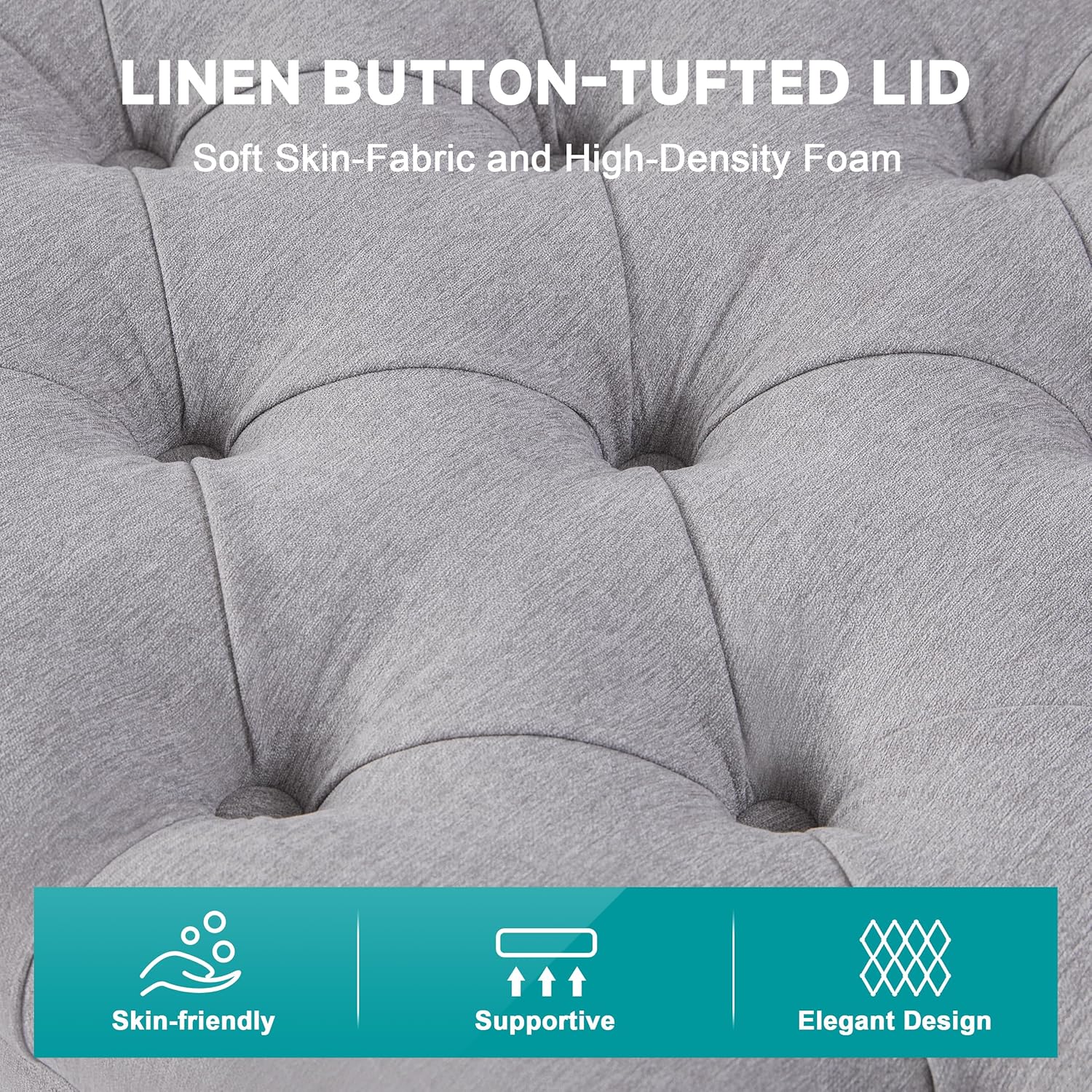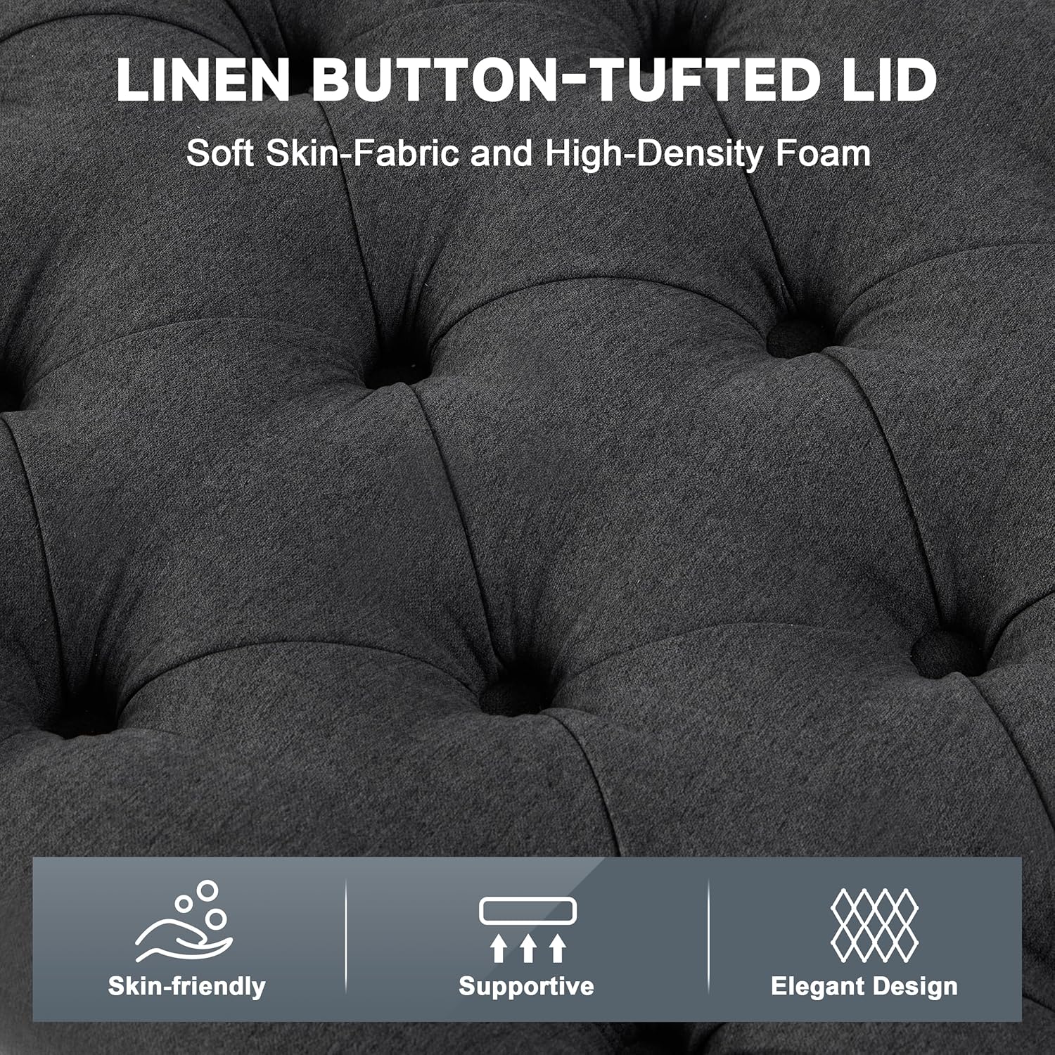 - Modern Minimalist Design: The tufted cushion design combines with a rectangular shape, while the neutral linen fabric of the ottoman storage bench effortlessly blends with both modern and classic styles, making it a versatile addition to any home decor