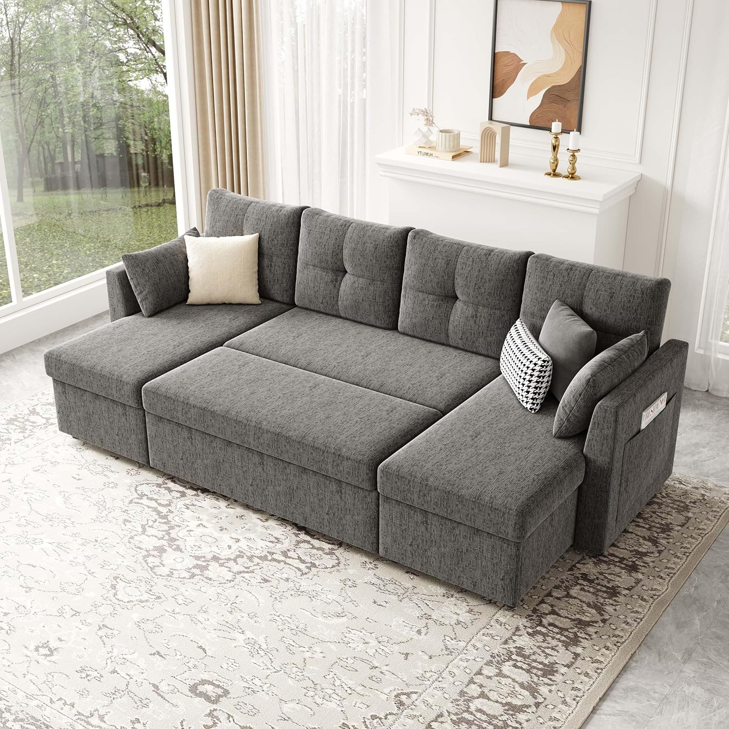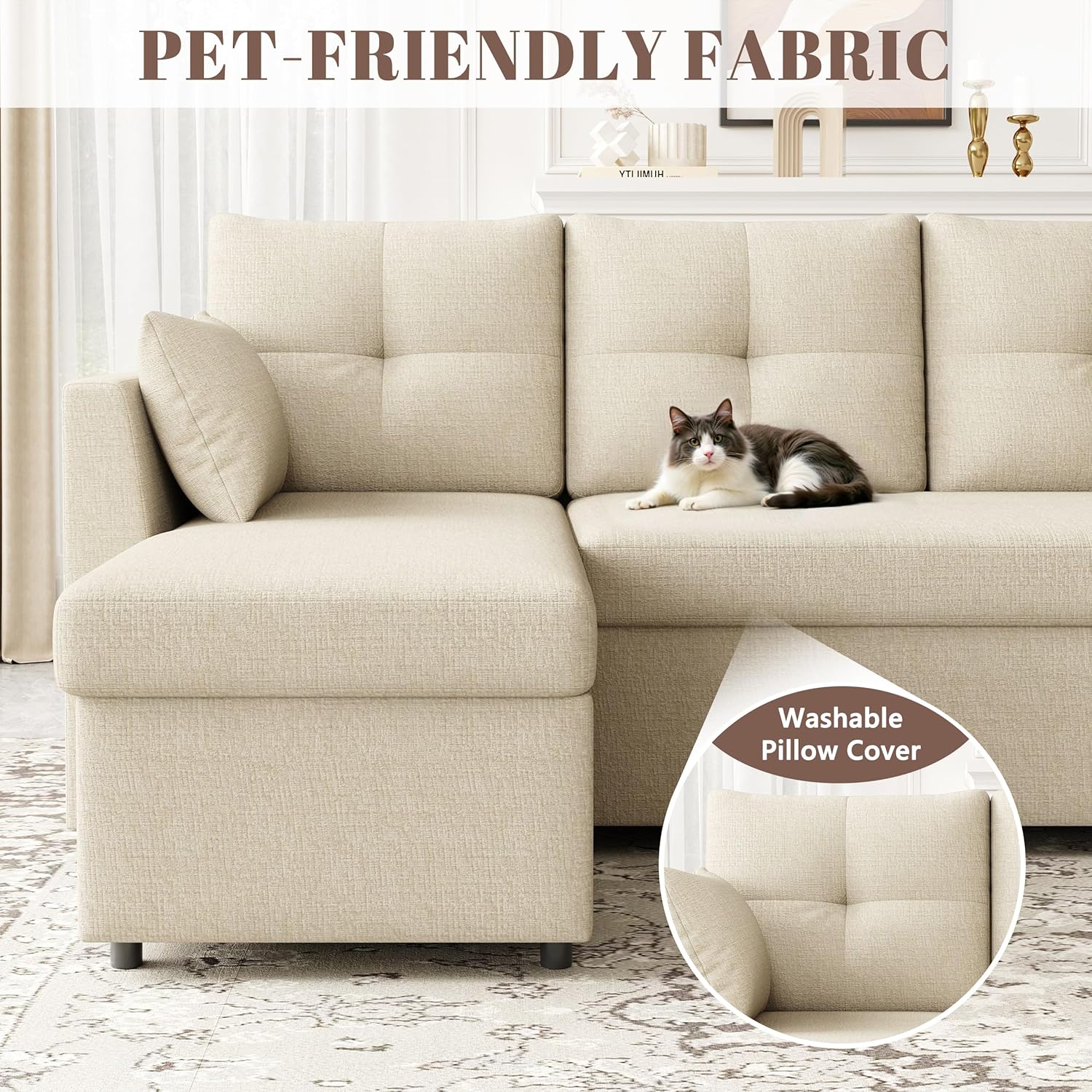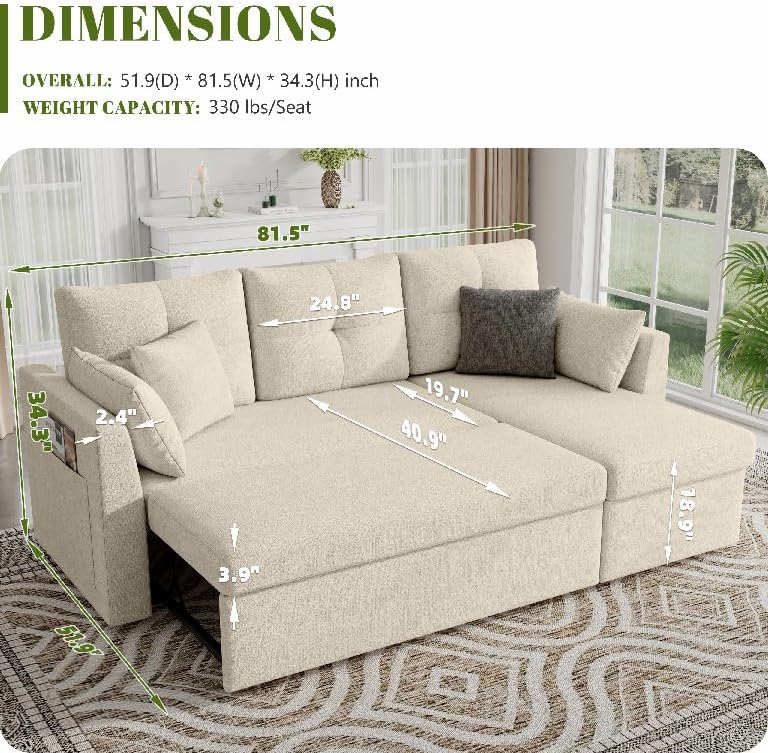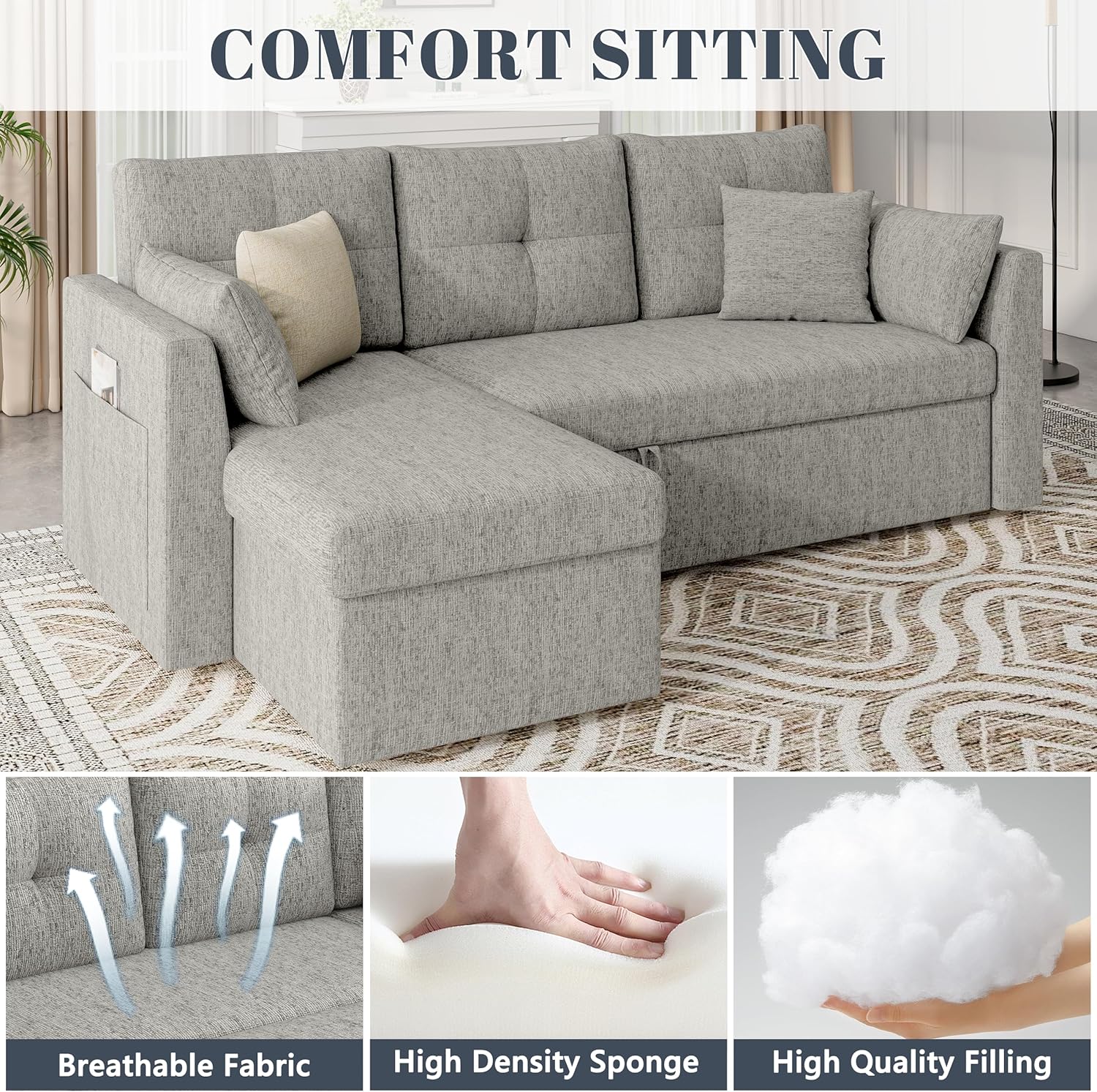 - COMFORTABLE AND BREATHABLE: Enjoy a plush sitting and lounging experience with comfortable cushions and breathable, anti-pilling fabric, ensuring a long-lasting fresh look of our sectional pull out couch