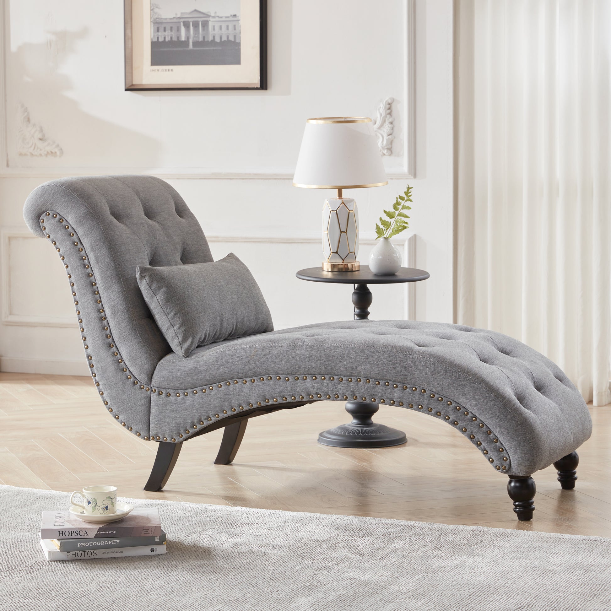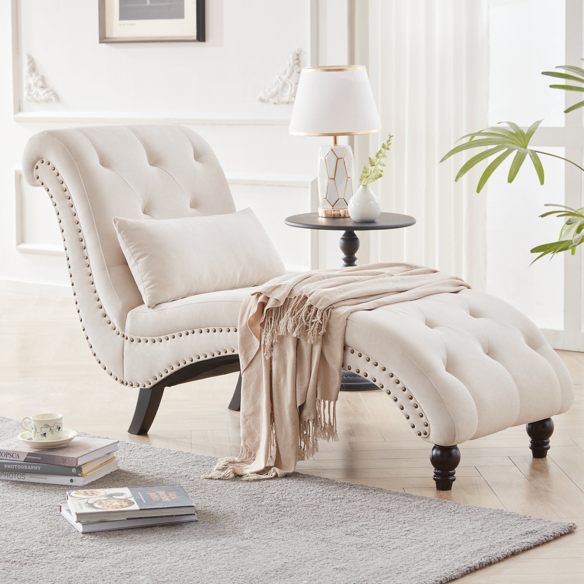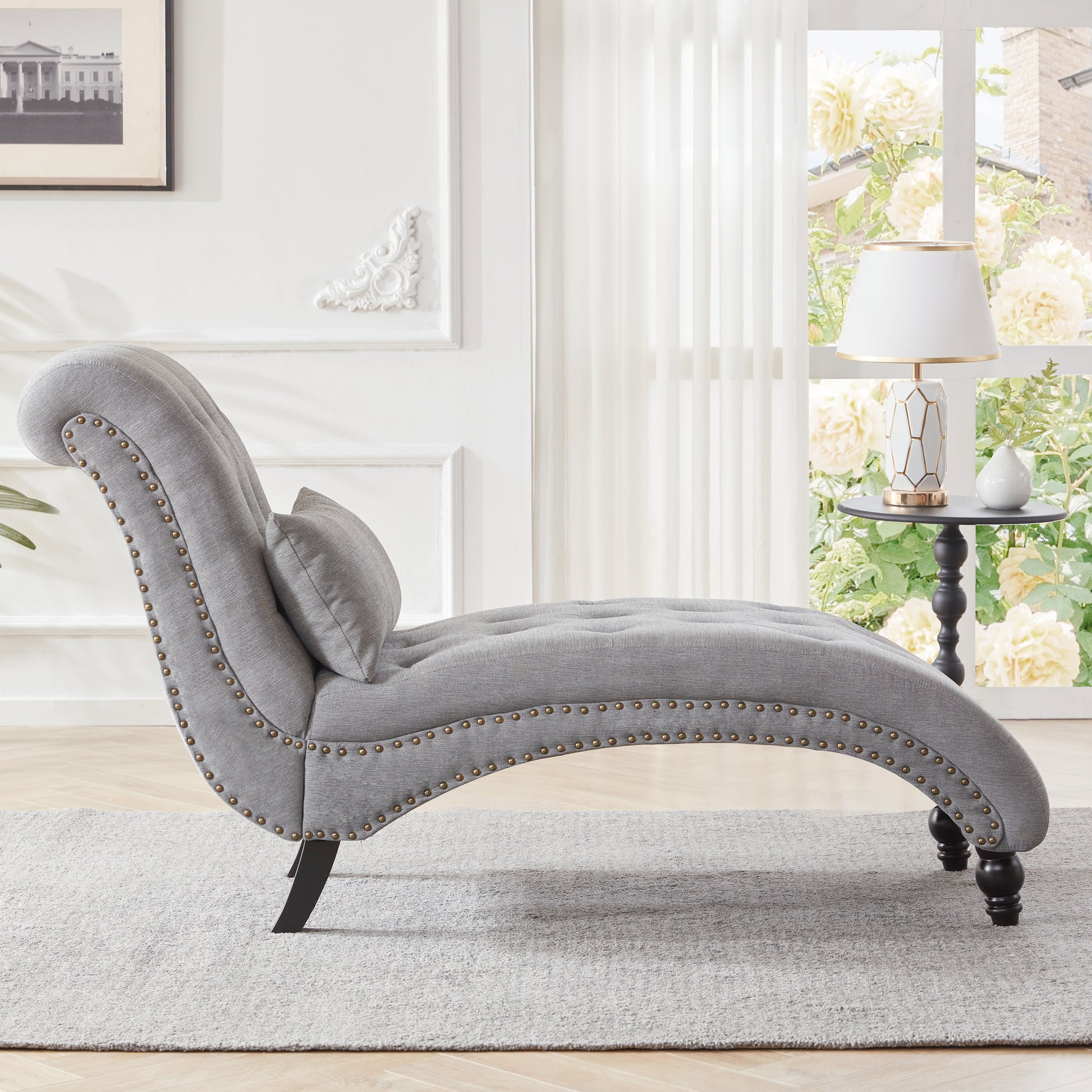 MangodanTufted Soft Chaise Lounge Indoor, Linen Rivets Chaise Lounge Chair for Bedroom Living Room