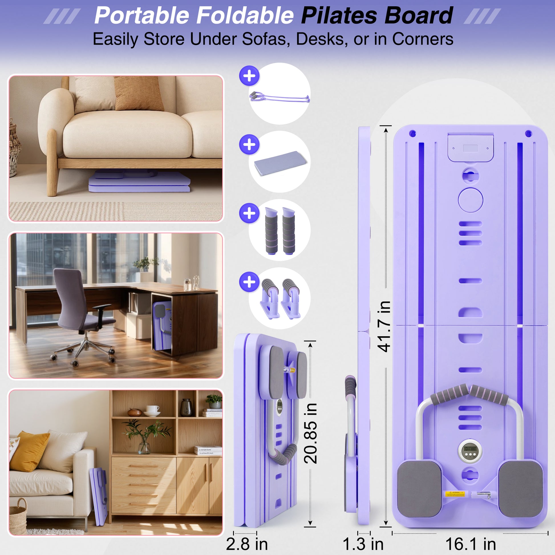 Pilates Board, Foldable Pilates Reformer, Portable Reformer Pilates Machine with Timer