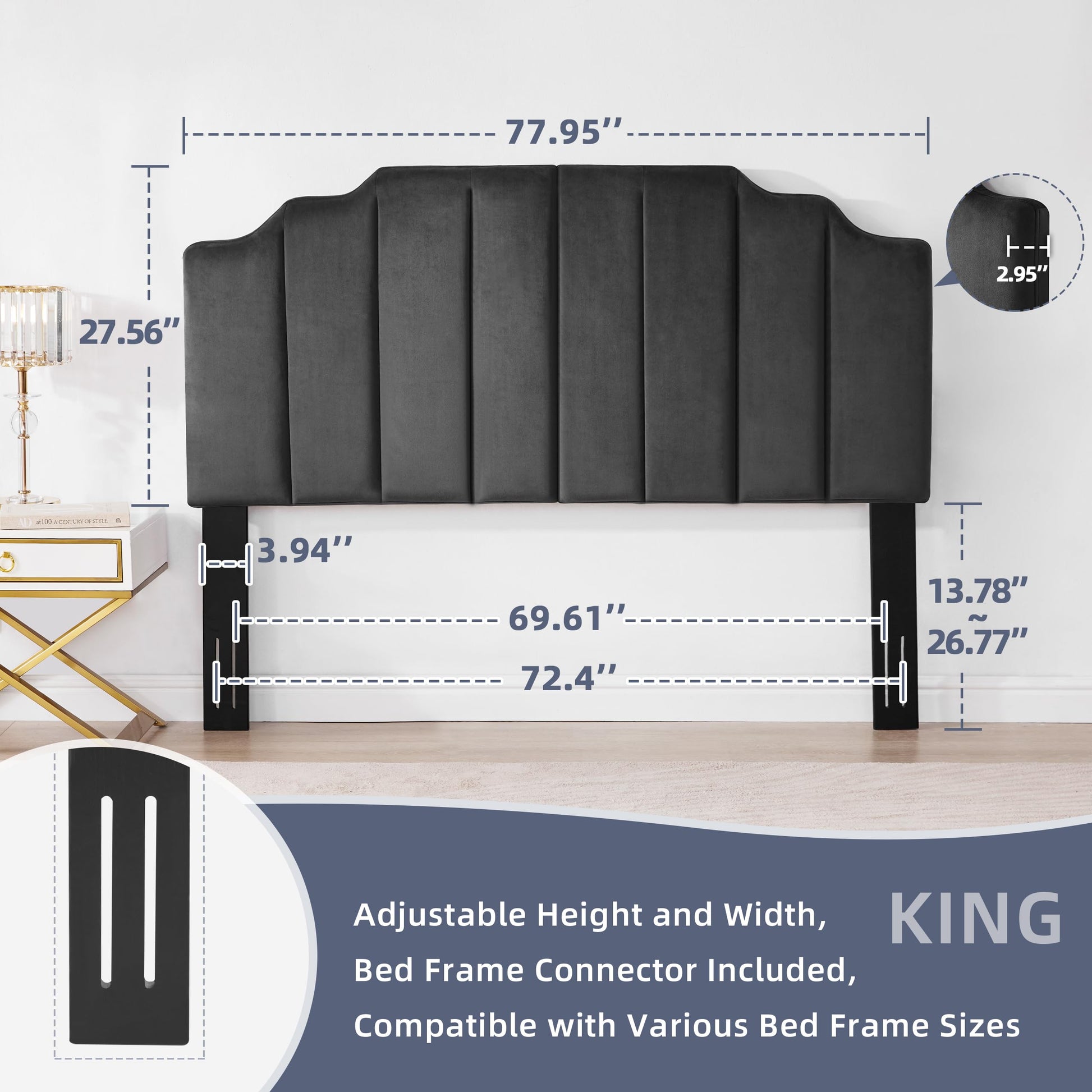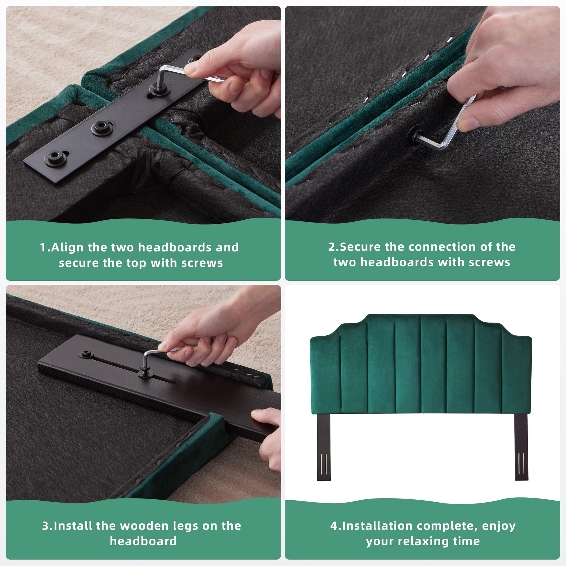 - Easy Assembly: We provide all necessary parts and clear instructions. Assembling this king size headboard only takes just 3 simple steps, with each component perfectly designed for a seamless fit, ensuring a quick and easy assembly process