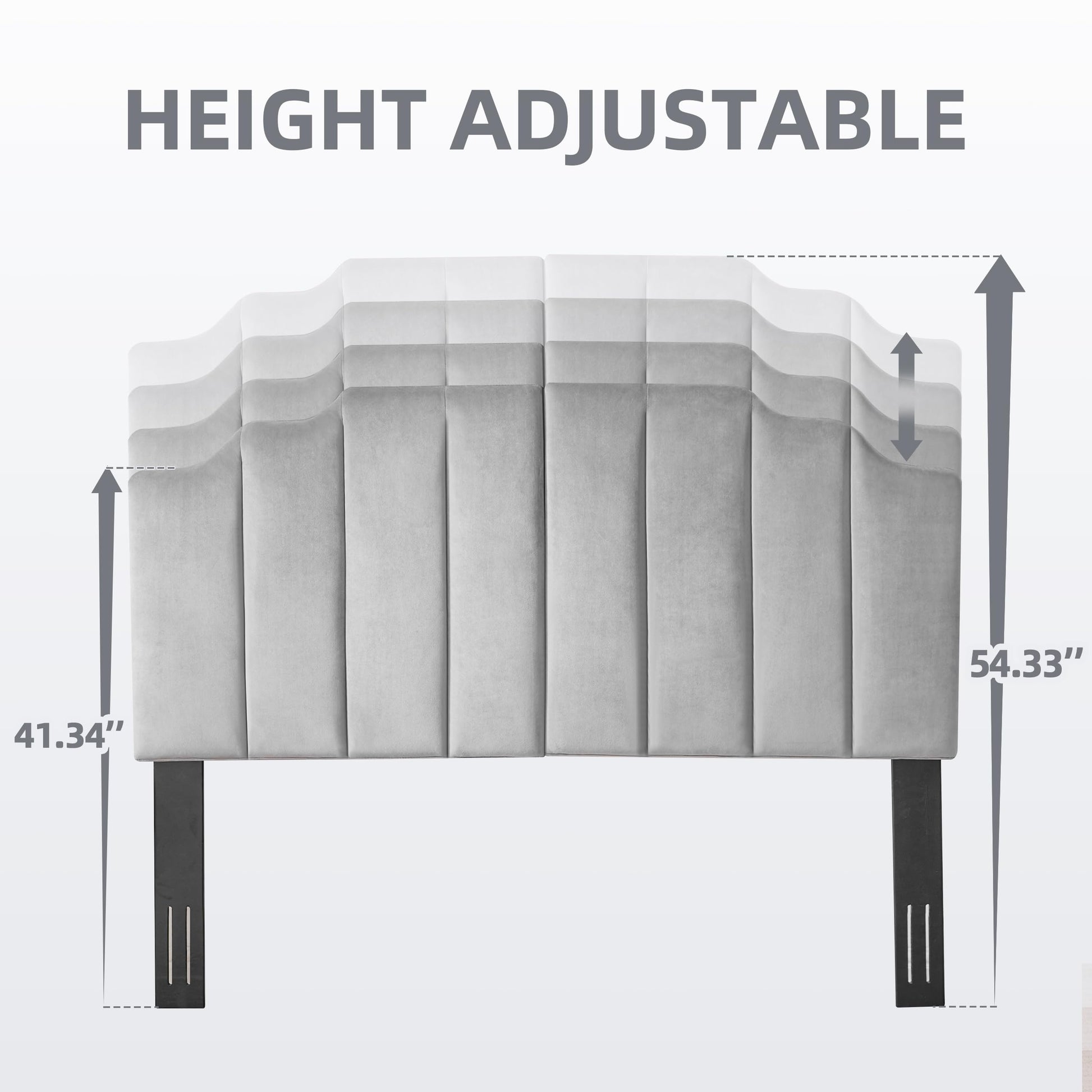 Velvet Head Board,Elegantly Curved Headboards only, Modern Vertical Channel Design Bed Head Board